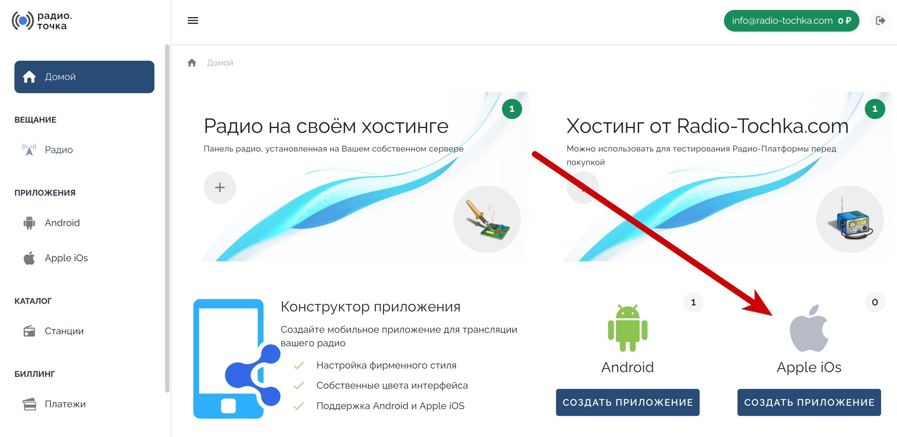 В личном кабинете откройте раздел “Приложения” -> “Apple iOs”.