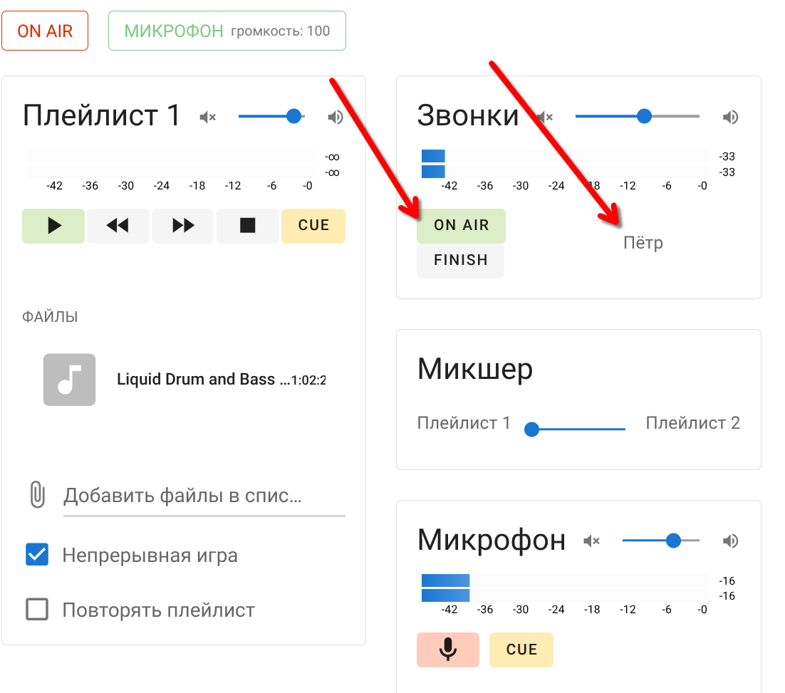 Чтобы вывести его в эфир, нажмите кнопку «ON AIR» под принятым звонком.
