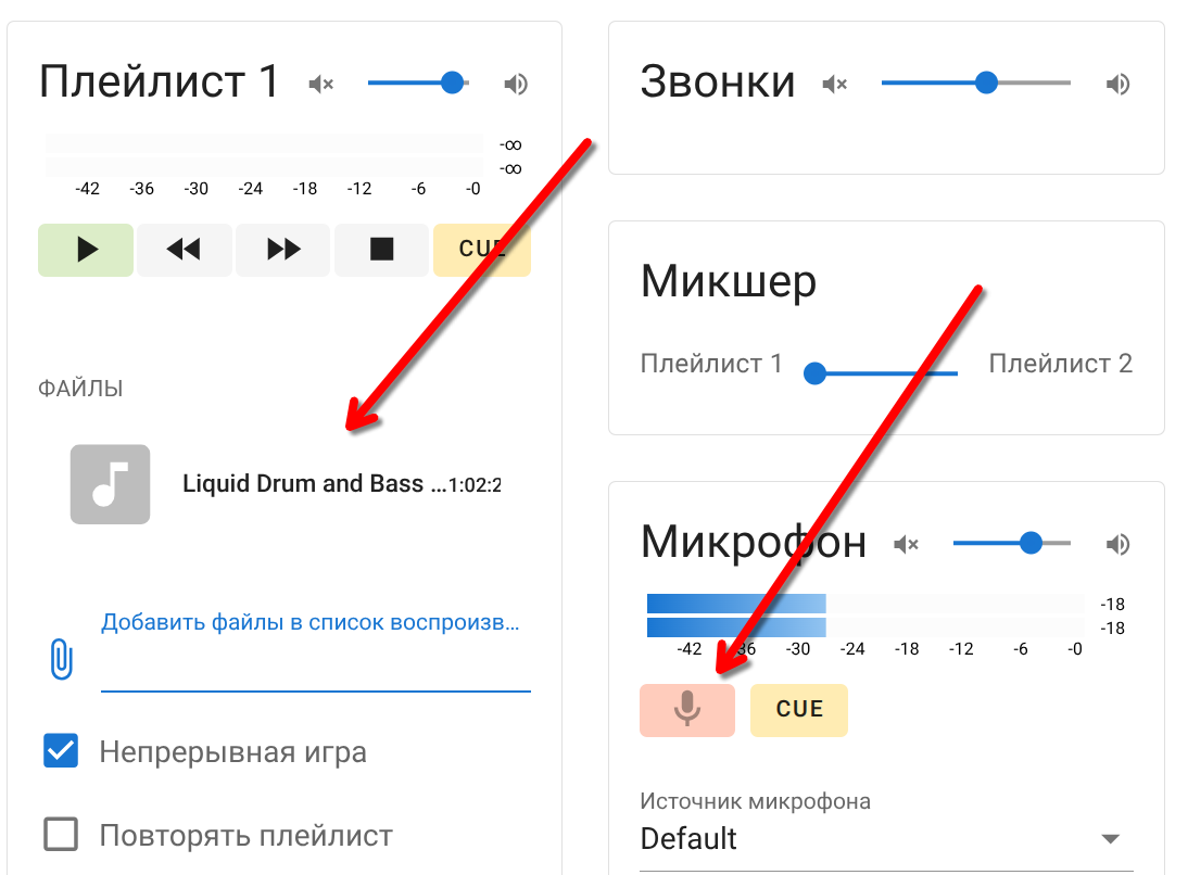 После подключения к серверу вещания ведущий может использовать один или сразу несколько источников звука: