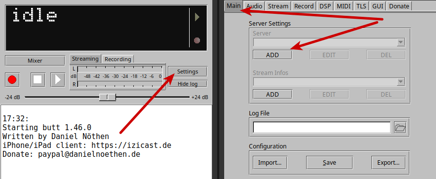 Настройка сервера в BUTT