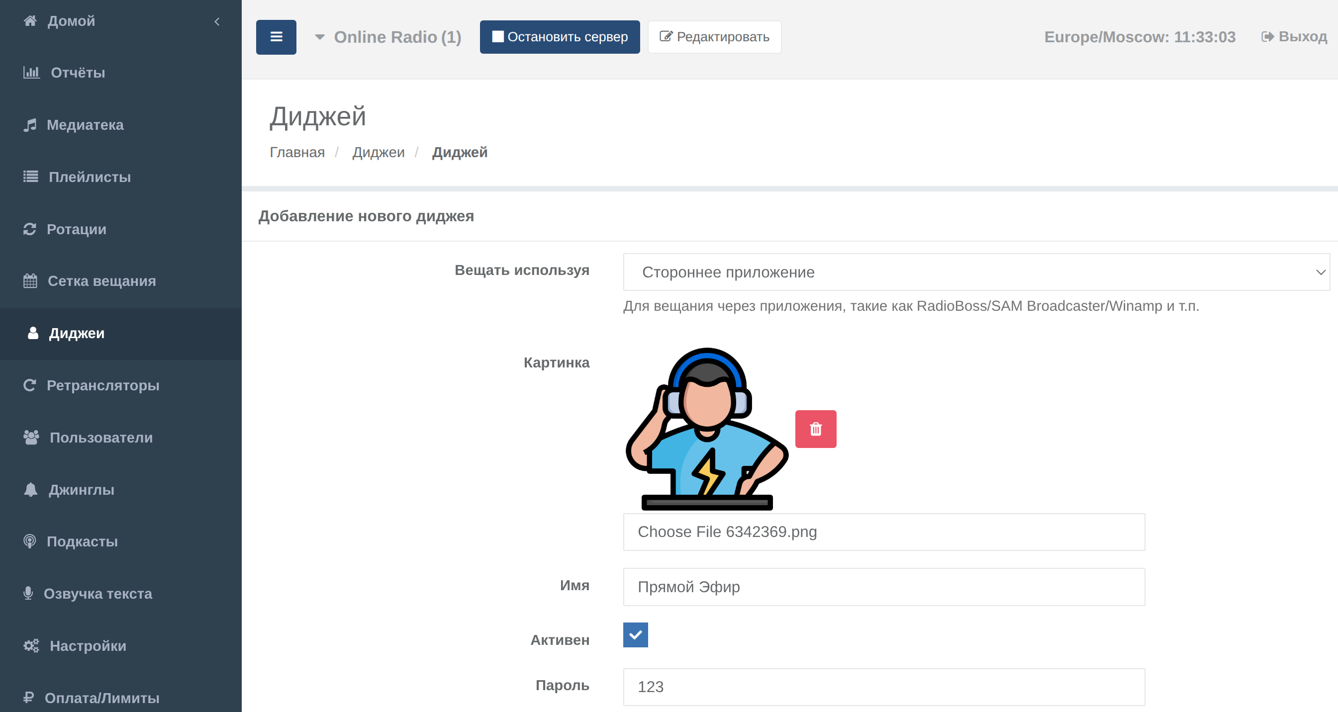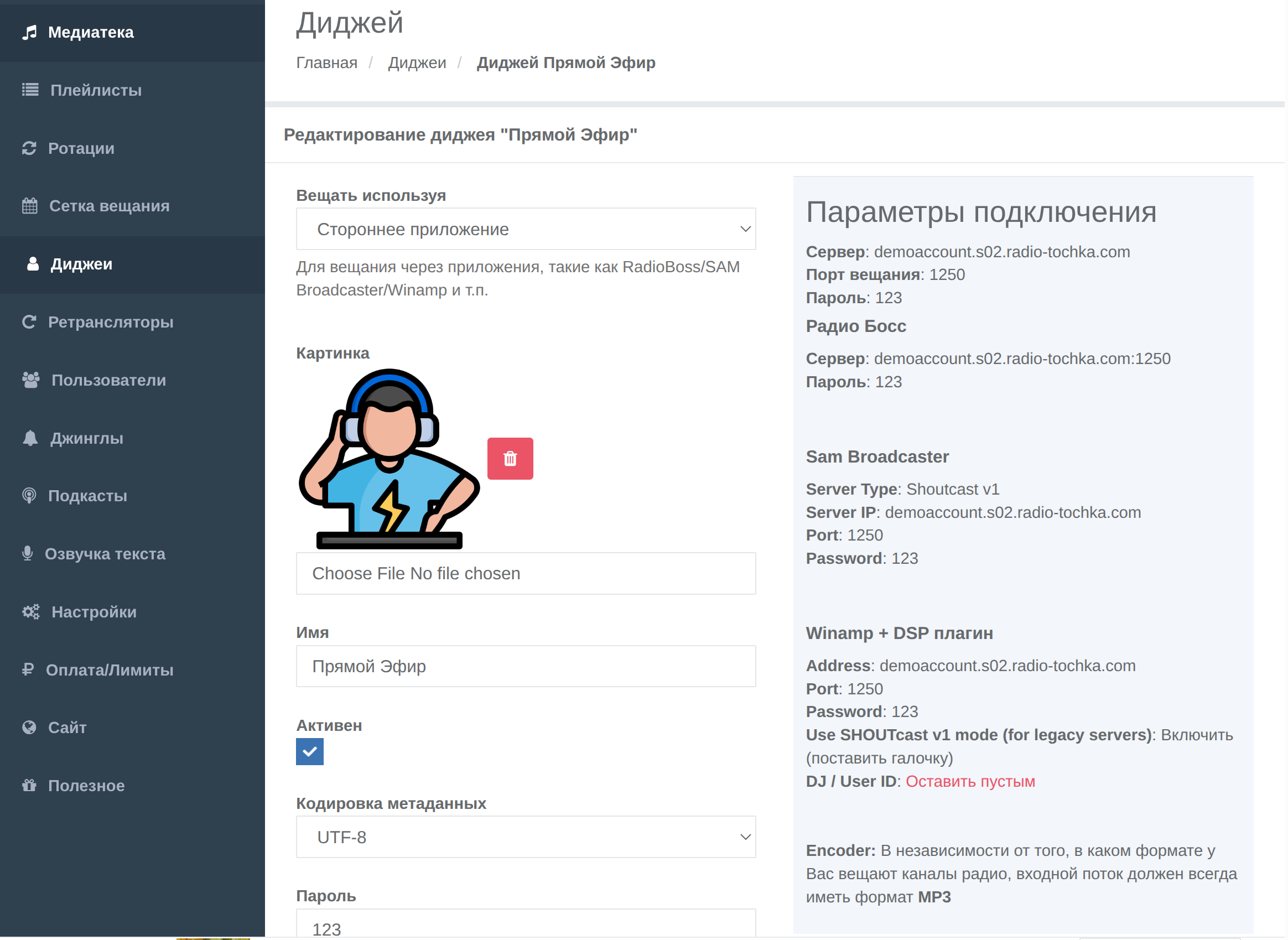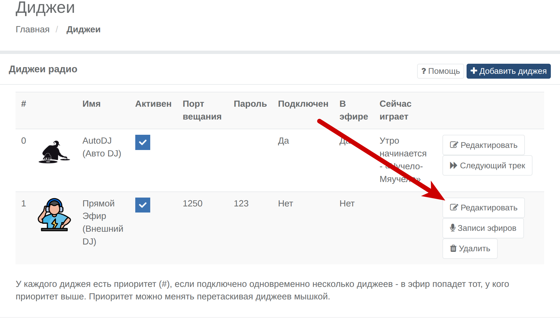 Одновременно с этим обновите страницу Диджеи в панели управления радио.