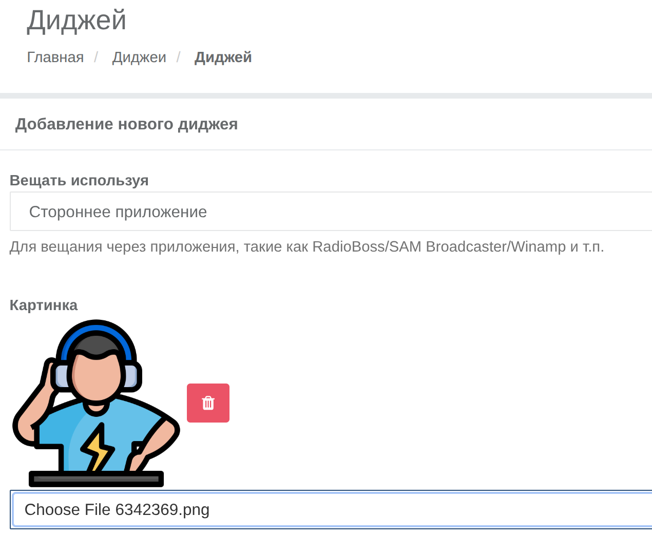 После нажатия кнопки «Добавить диджея» откроется форма создания DJ. В этой форме необходимо:
