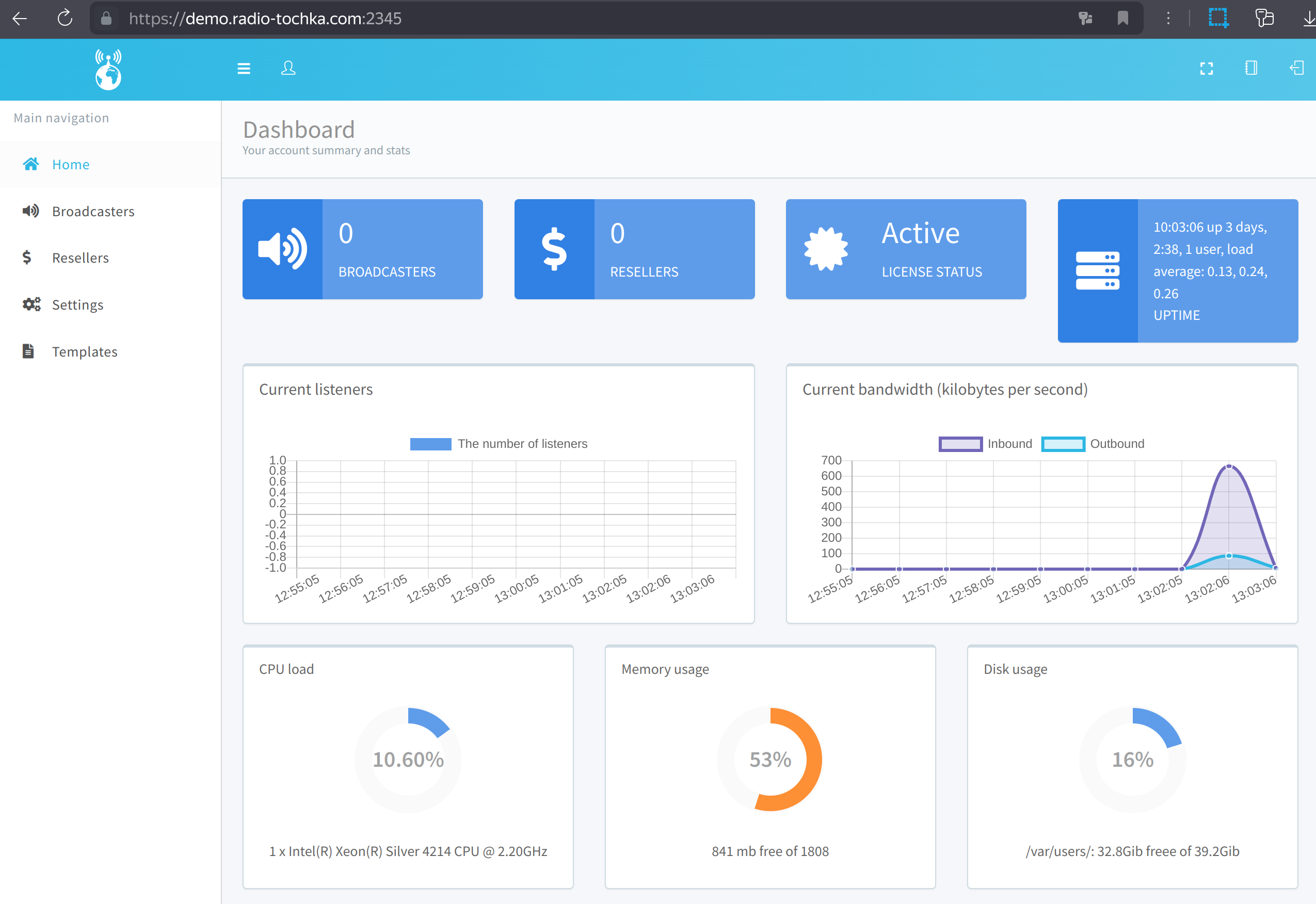 - Доменное имя: demo.radio-tochka.com
