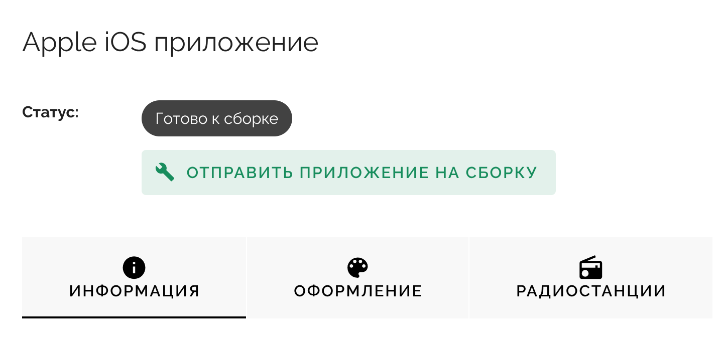 Когда вся информация заполнена корректно - отправьте приложение на сборку, используя соответствующую кнопку в верхнем меню, наш специалист скомпилирует приложение и мы сможем отправить Вам скриншоты.