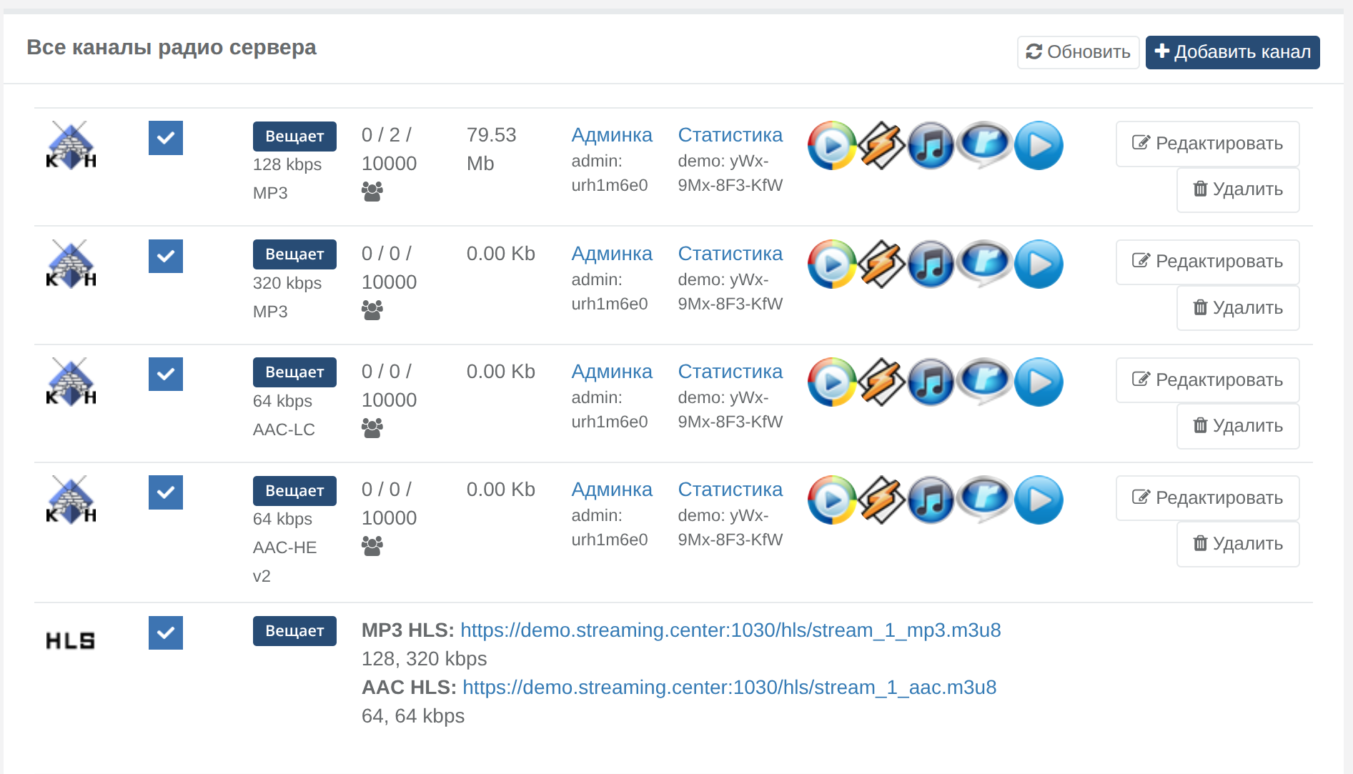 Наша панель управления использует именно правильный, стандартный HLS - стрим разбивается на короткие фрагменты, скачивающиеся параллельно, а не просто перечисляет потоки радио в статическом списке.